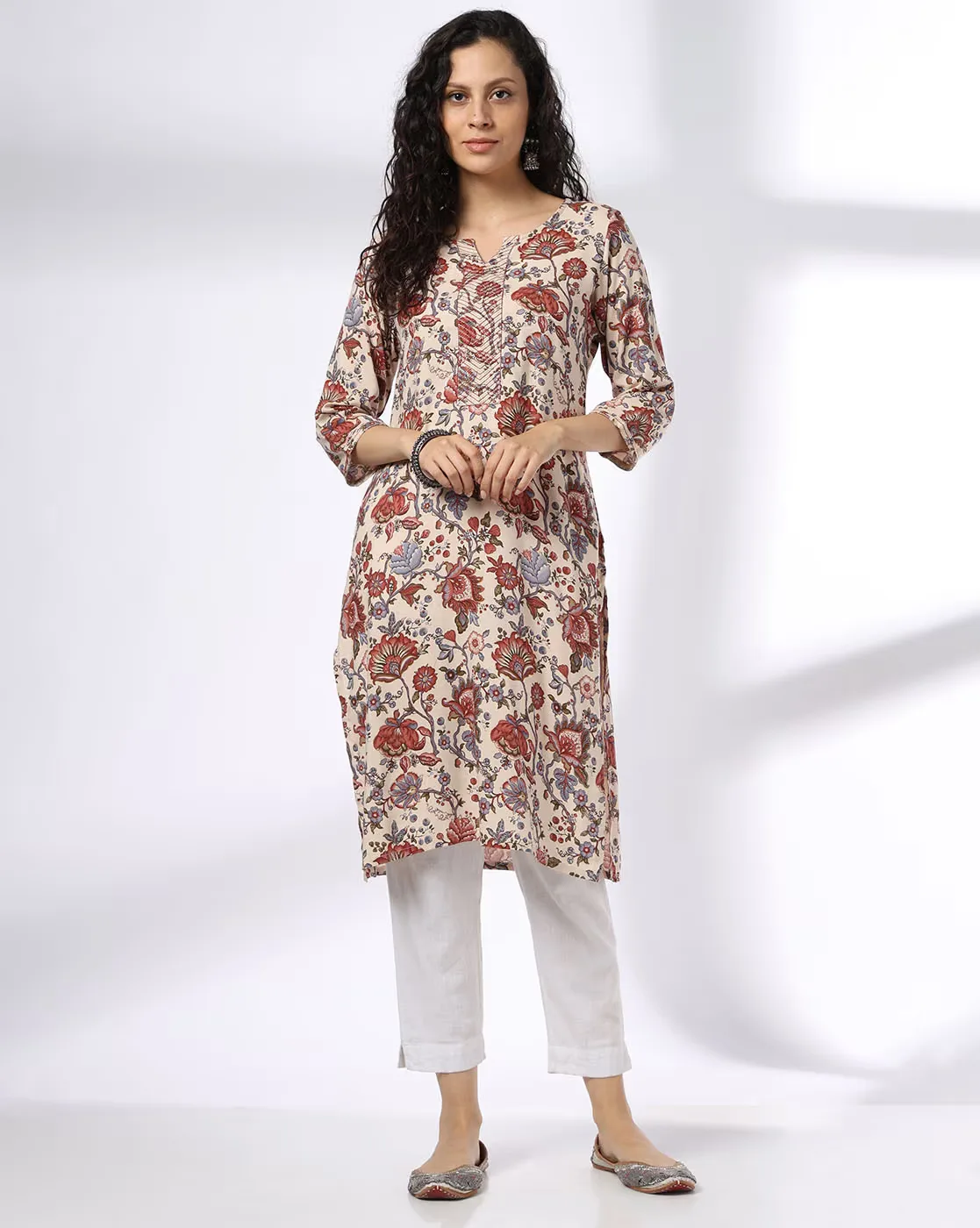 Women Paisley Print Straight Kurta with Neck Tie-Up