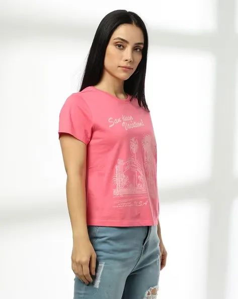 Women San Diego Vacation Printed Regular Fit Crew-Neck T-Shirt